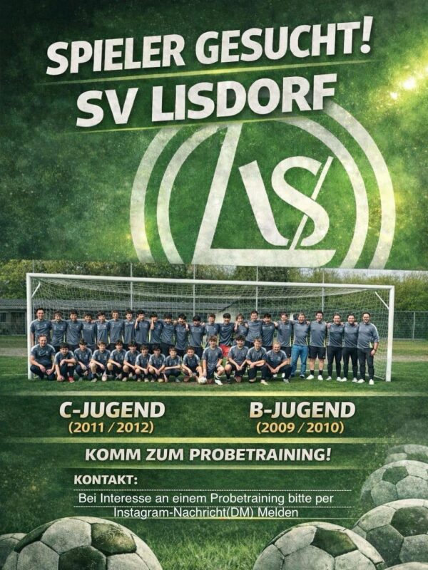 Allgemein SV Lisdorf: Du bist gesucht! 10. März 2026 Andreas Lesmeister Wir freuen uns jederzeit über neue Spieler, egal ob Aktive oder Jugend. Meldet euch!